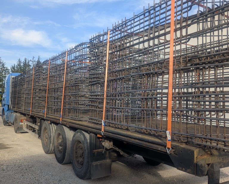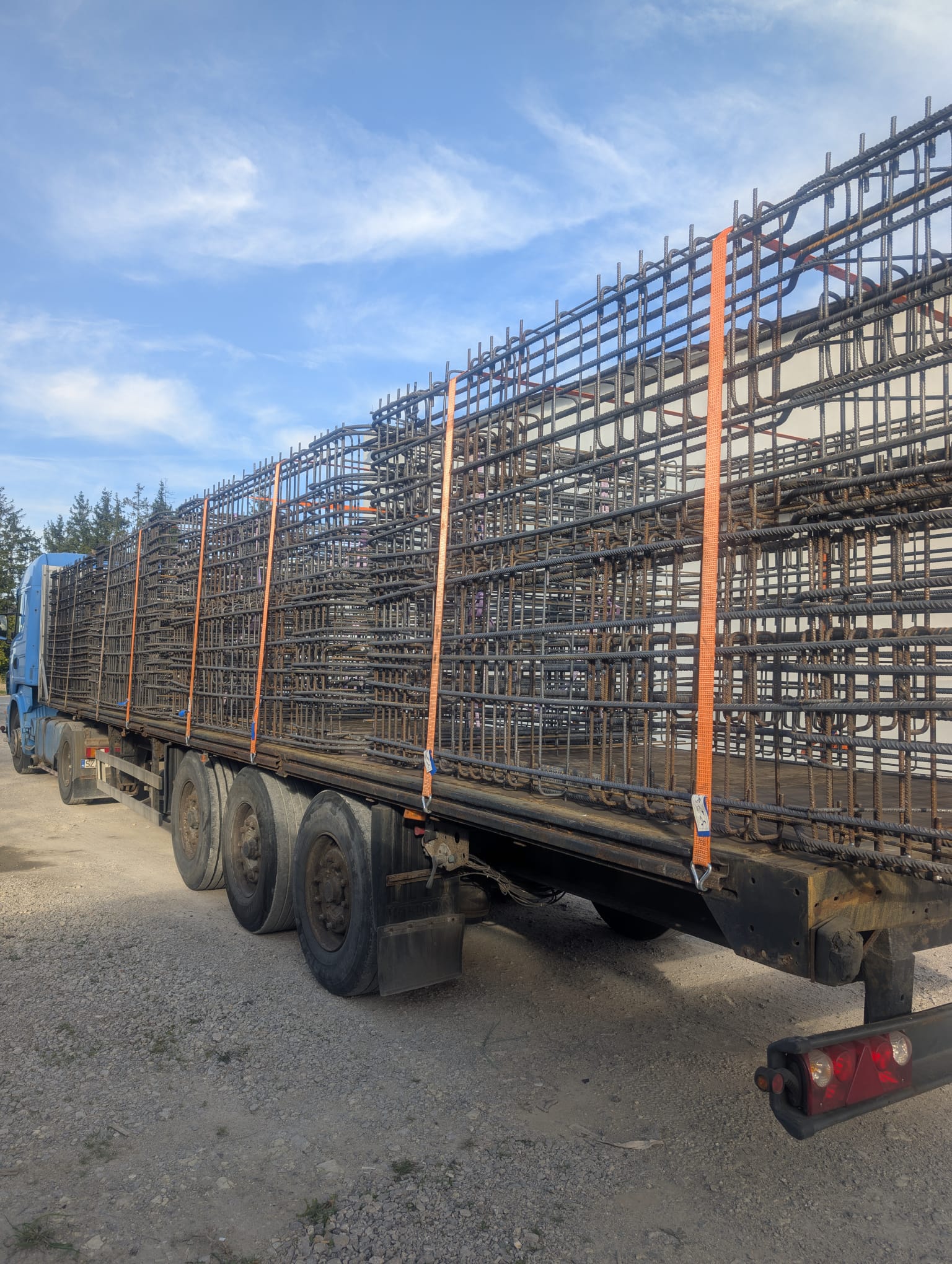 Gotowe elementy są ładowane wraz z jednorazowymi zawiesiami pasowymi do łatwiejszego rozładunku u klienta. Poprzez ładowanie za pomocą suwnicy optymalizujemy załadunek w taki sposób aby maksymalnie wykorzystać przestrzeń załadunkową naczepy.